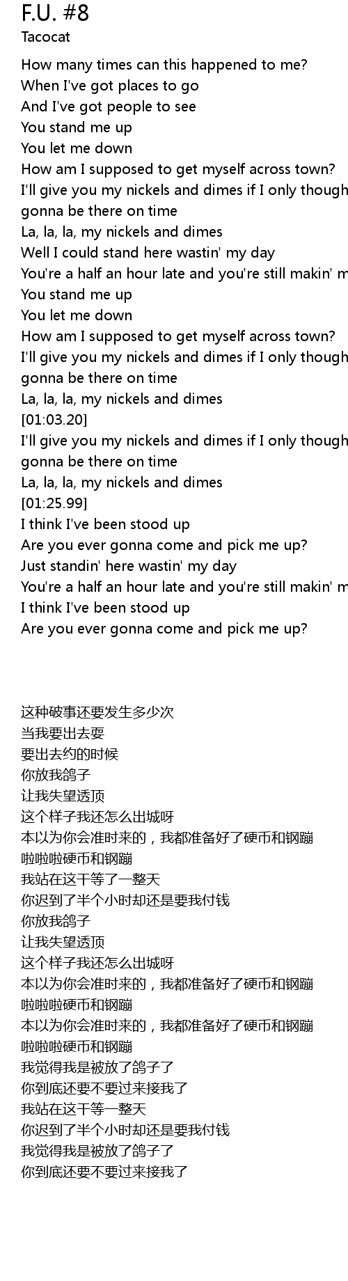 | [00:35.22] | La, la, la, my nickels and dimes |