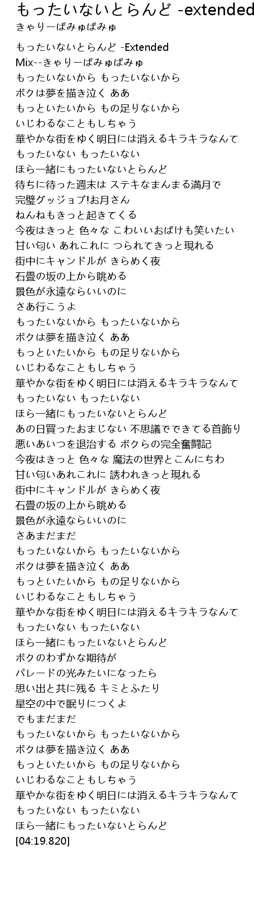 | [00:00.630] | もったいないとらんど -Extended Mix--きゃりーぱみゅぱみゅ |