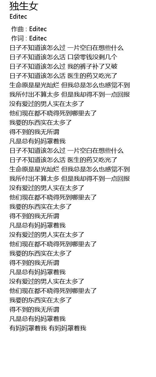 | [00:01.00] | 作词 : Editec |