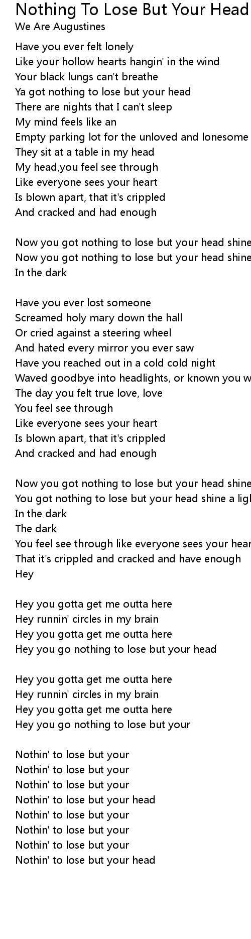 Hey you go nothing to lose but your head |