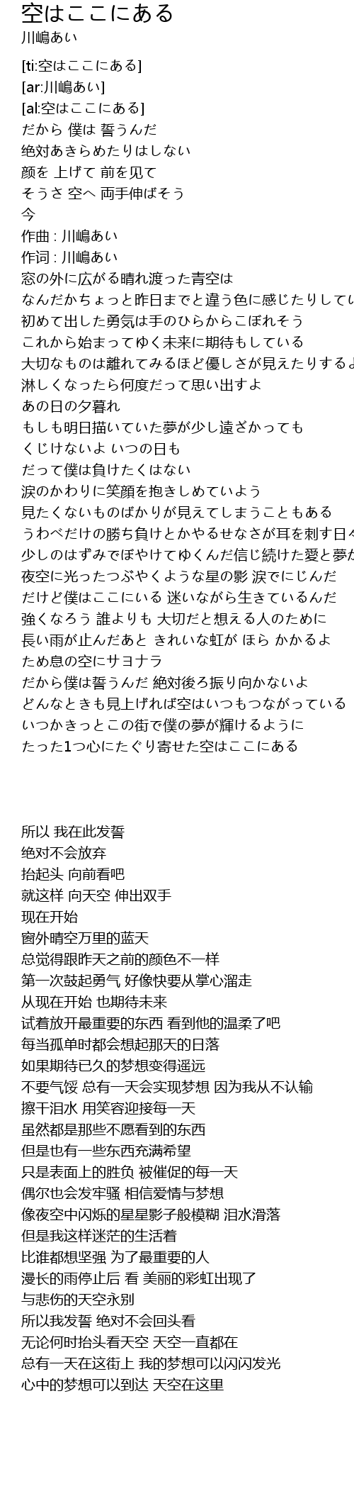 | [04:07.34] | どんなときも見上げれば空はいつもつながっている |