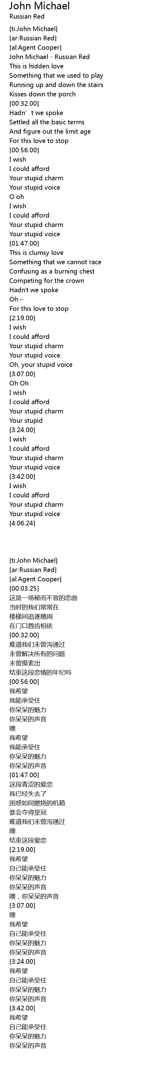| [00:03.25] | John Michael Russian Red |