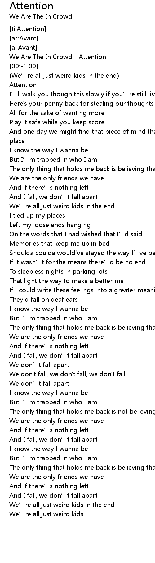 | [00:-2.00] | We Are The In Crowd - Attention |