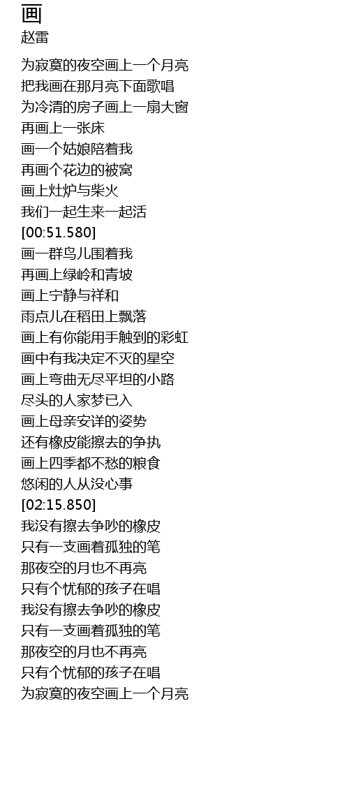 | [00:15.940] | 把我画在那月亮下面歌唱 |