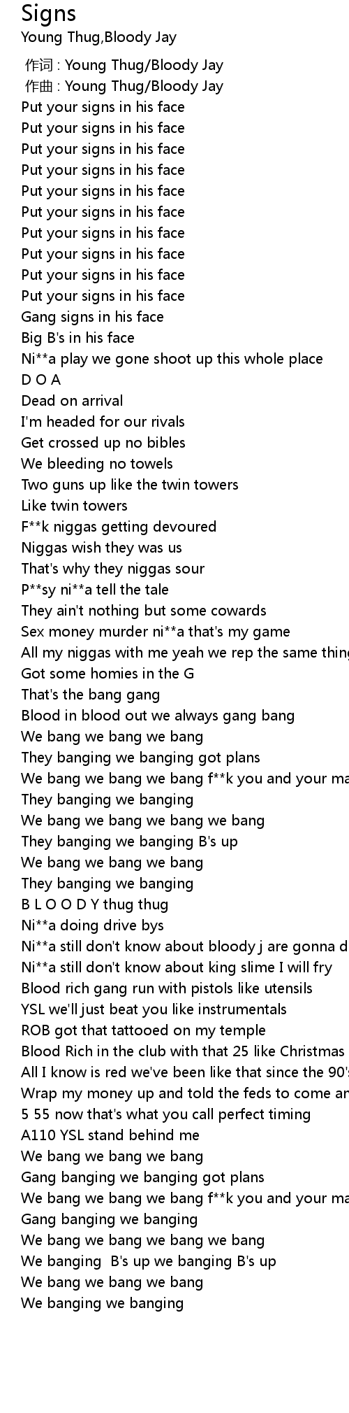 | [01:50.08] | Ni**a still don't know about bloody j are gonna die |