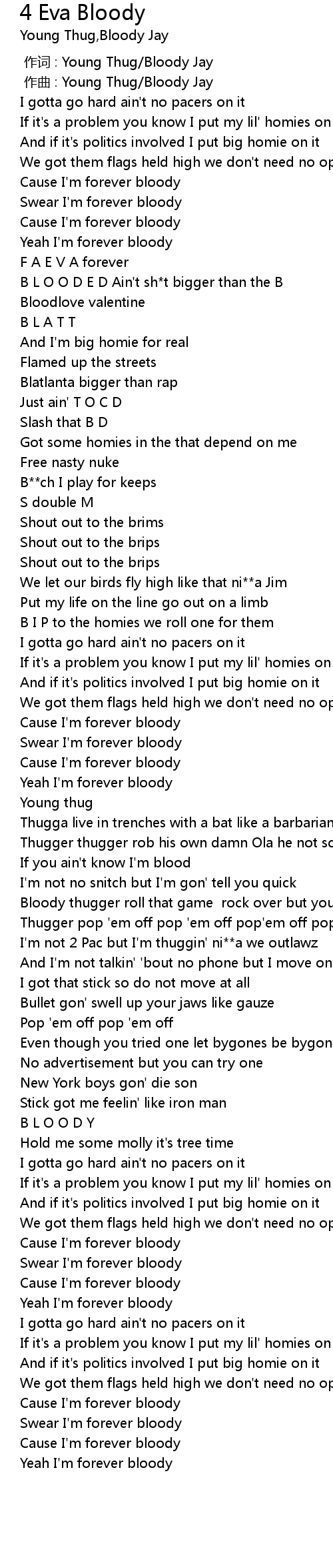 | [00:00.000] | 作词 : Young Thug/Bloody Jay |