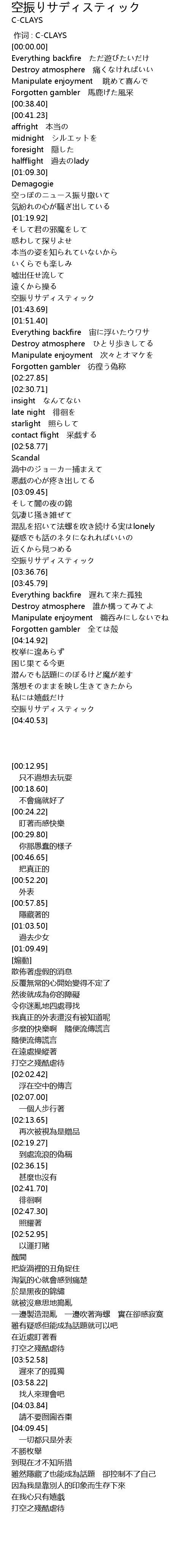 | [00:00.00] | 作词 : C-CLAYS |