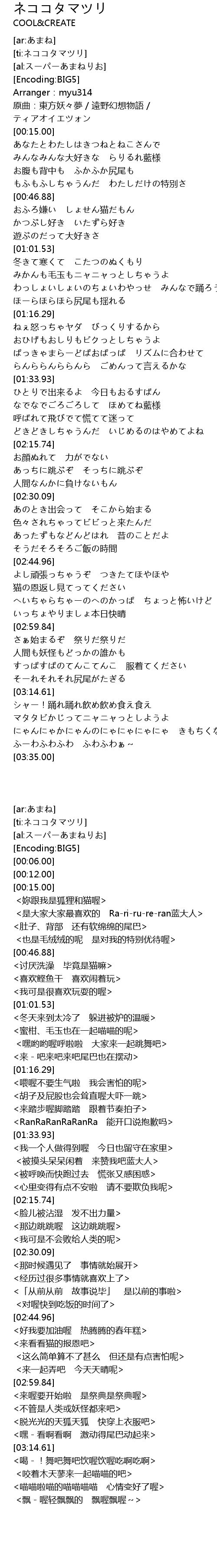 | [ti:ネココタマツリ] | |