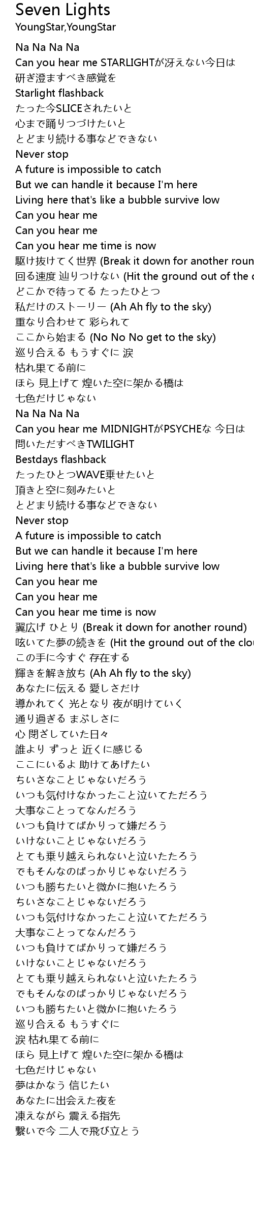 | [01:32.53] | Can you hear me MIDNIGHTがPSYCHEな 今日は |