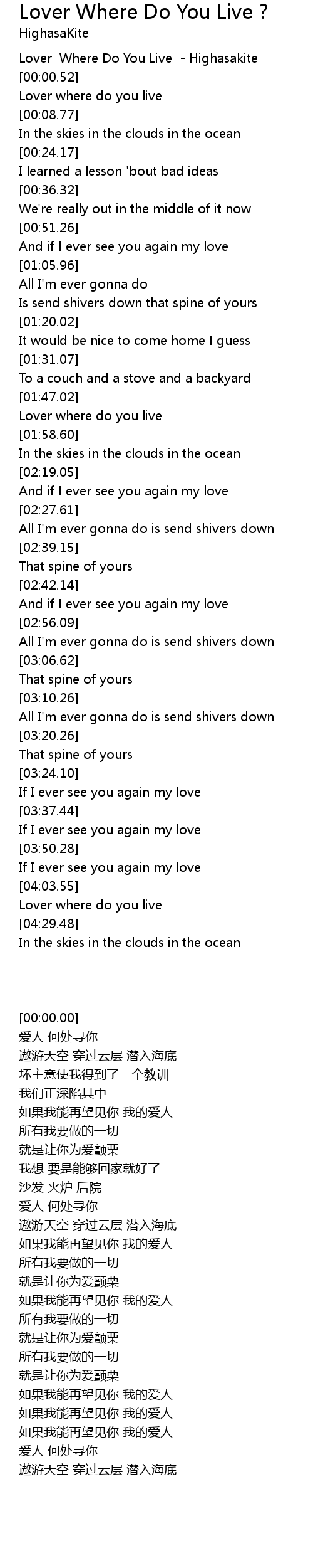 Lover where do you live |