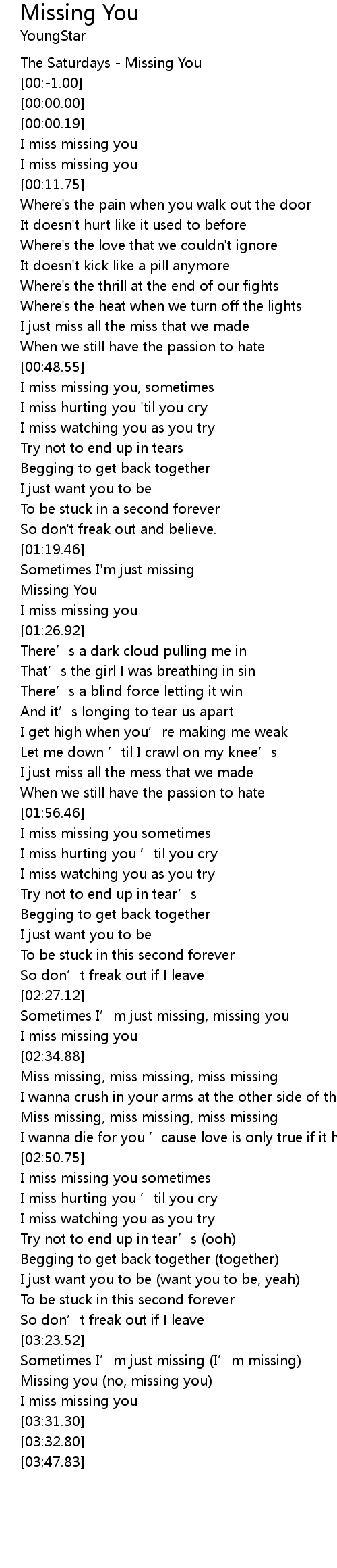 | [02:43.00] | Miss missing, miss missing, miss missing |