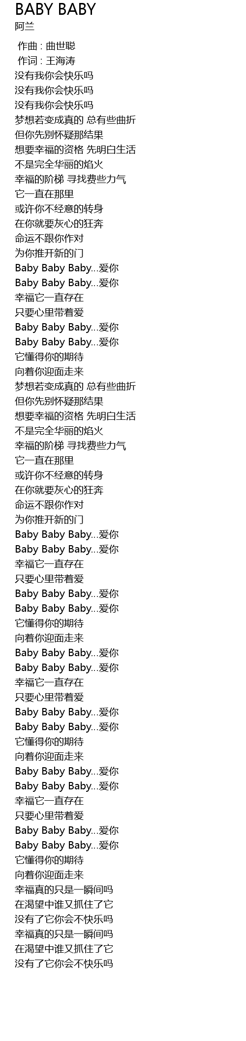 | [02:46.00] | Baby Baby Baby…爱你 |