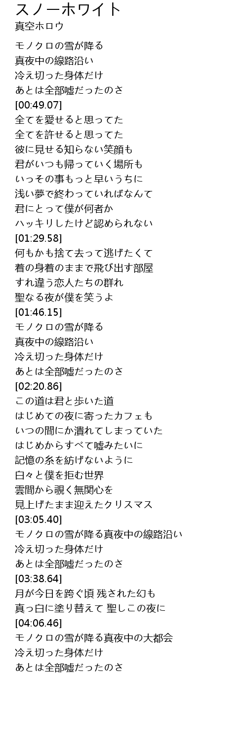 | [00:15.61] | モノクロの雪が降る |