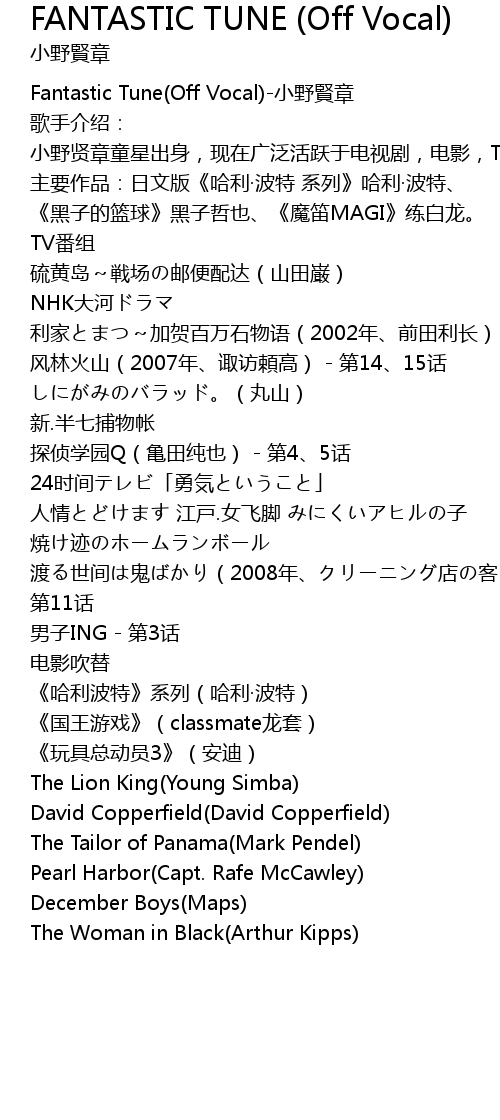 | Fantastic Tune(Off Vocal)-小野賢章 | |