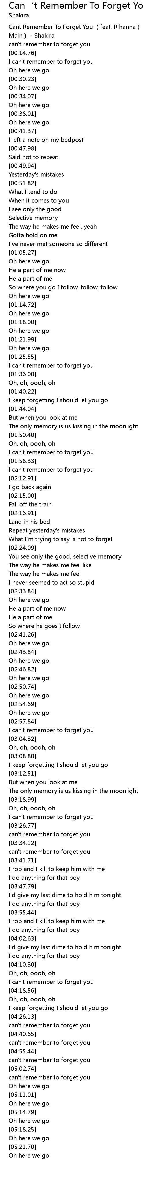 | [00:00.51] | Cant Remember To Forget You feat. Rihanna Razor Guido Main Shakira |