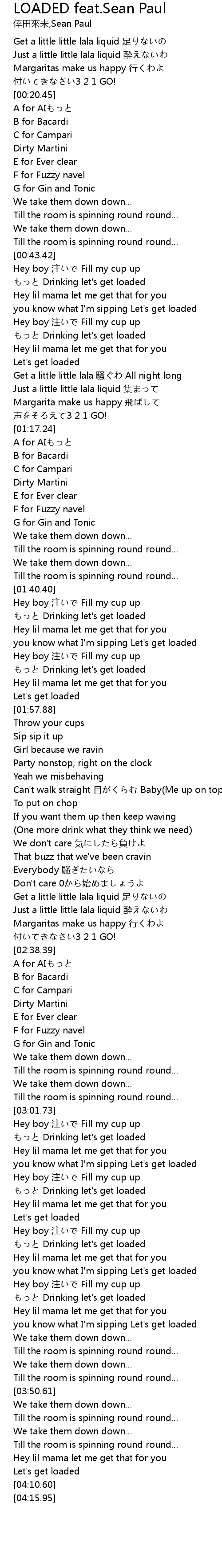 | [03:33.95] | you know what I'm sipping Let's get loaded |