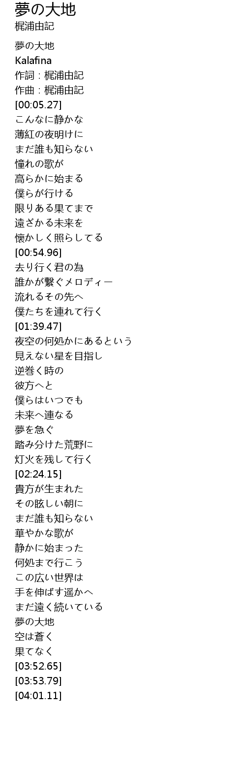 | [00:00.00] | 夢の大地 |