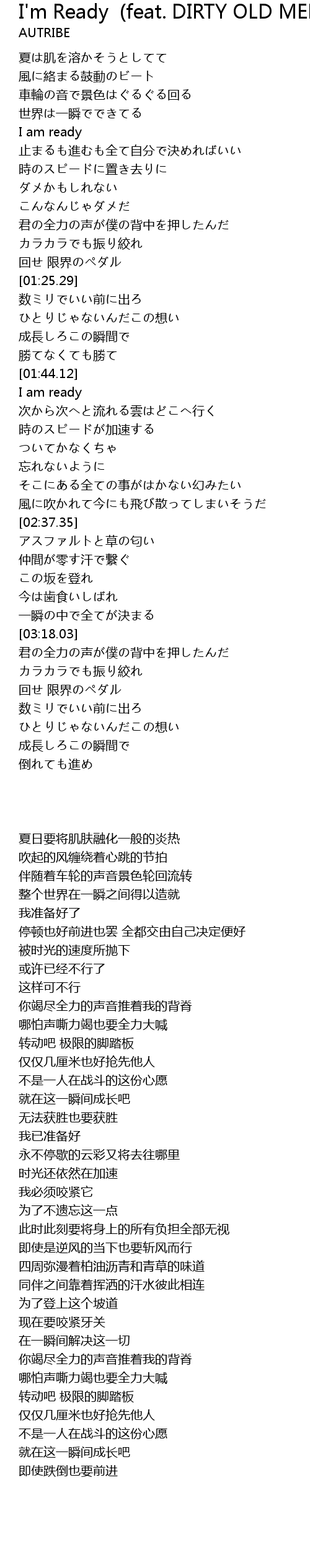 | [01:20.80] | 回せ 限界のペダル |