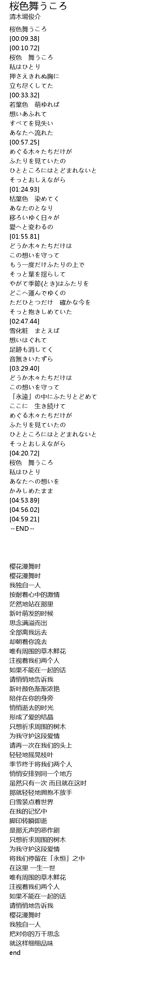| [02:20.19] | やがて季節(とき)はふたりを |