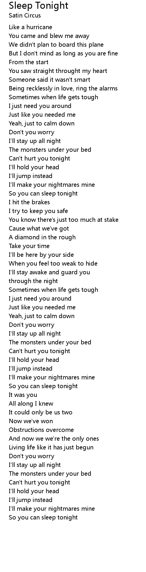 So you can sleep tonight |