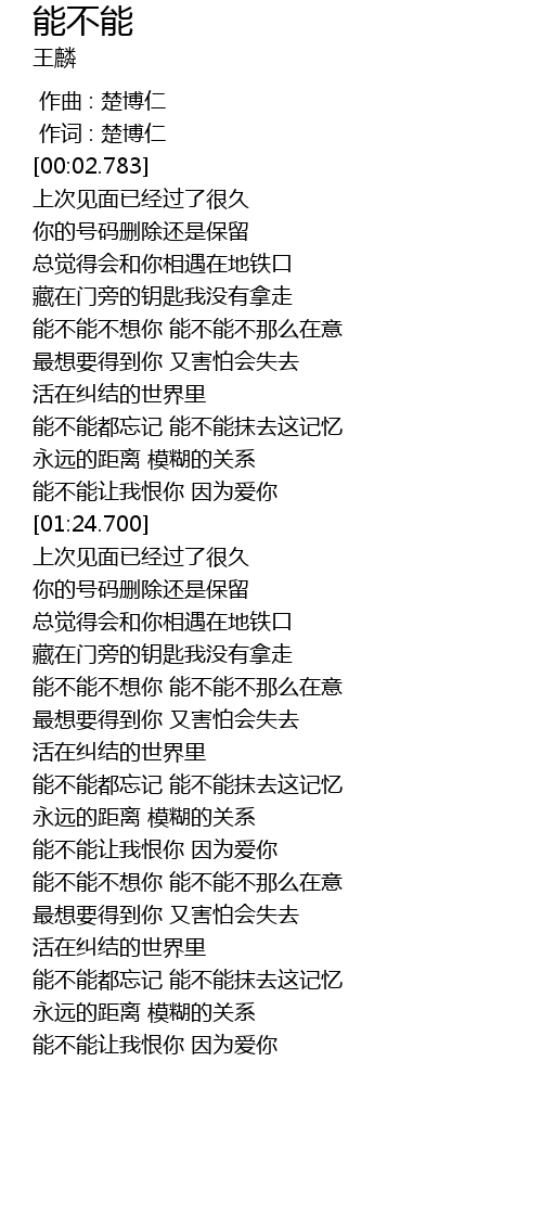| [02:08.916] | néng bù néng bù xiǎng nǐ néng bù néng bù nà me zài yì |