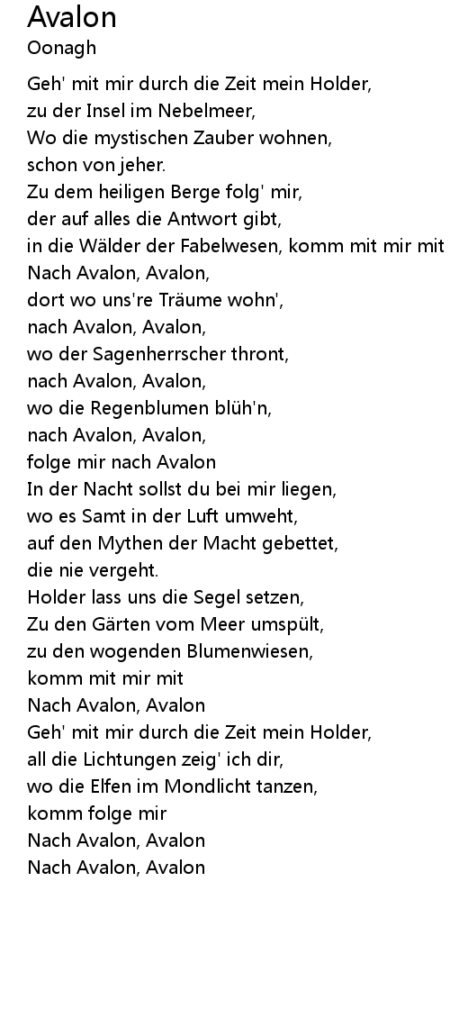 | Nach Avalon, Avalon, | |