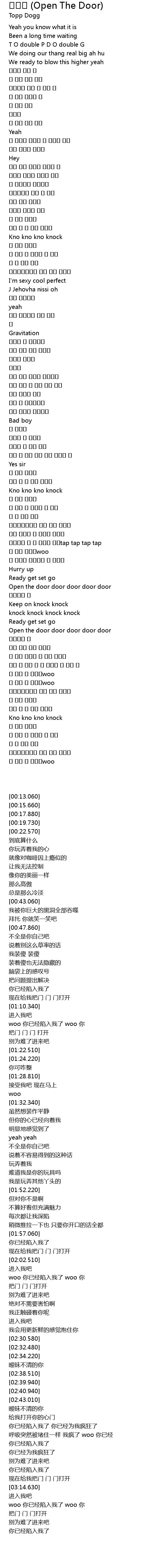 | [02:43.010] | Open the door door door door door |