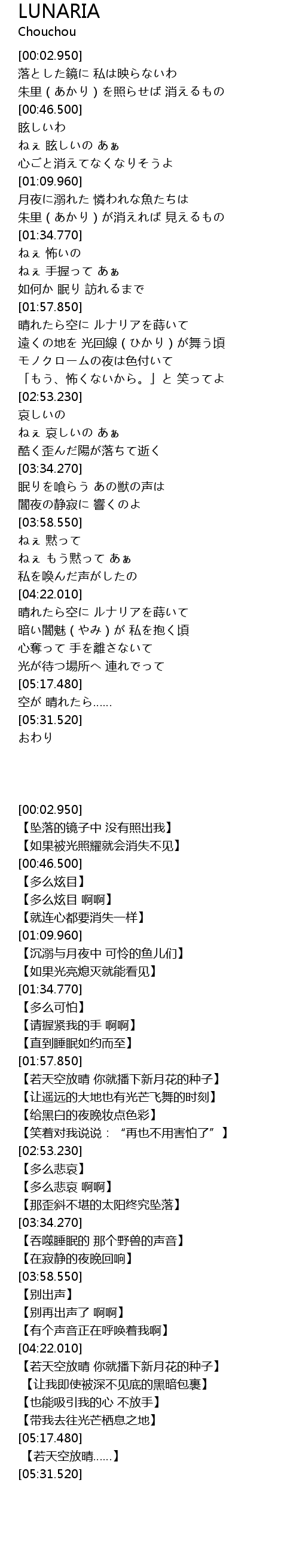 | [00:36.210] | 朱里(あかり)を照らせば 消えるもの |