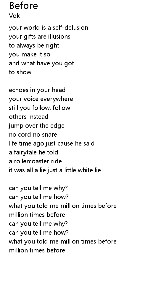 what you told me million times before |