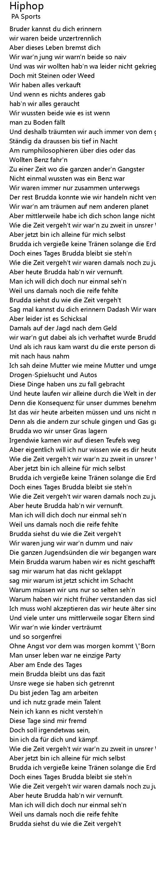 | Brudda siehst du wie die Zeit vergeh' t | |