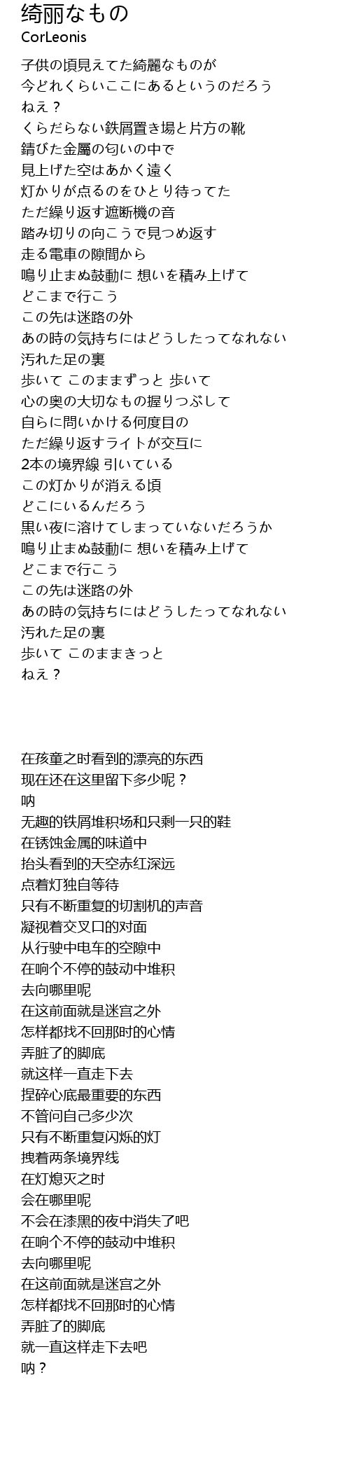 | Song | 绮丽なもの |