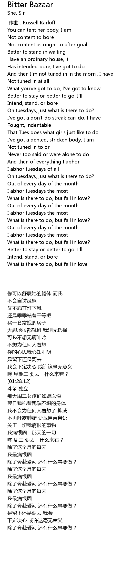 | [02:01.52] | I abhor tuesdays of all |