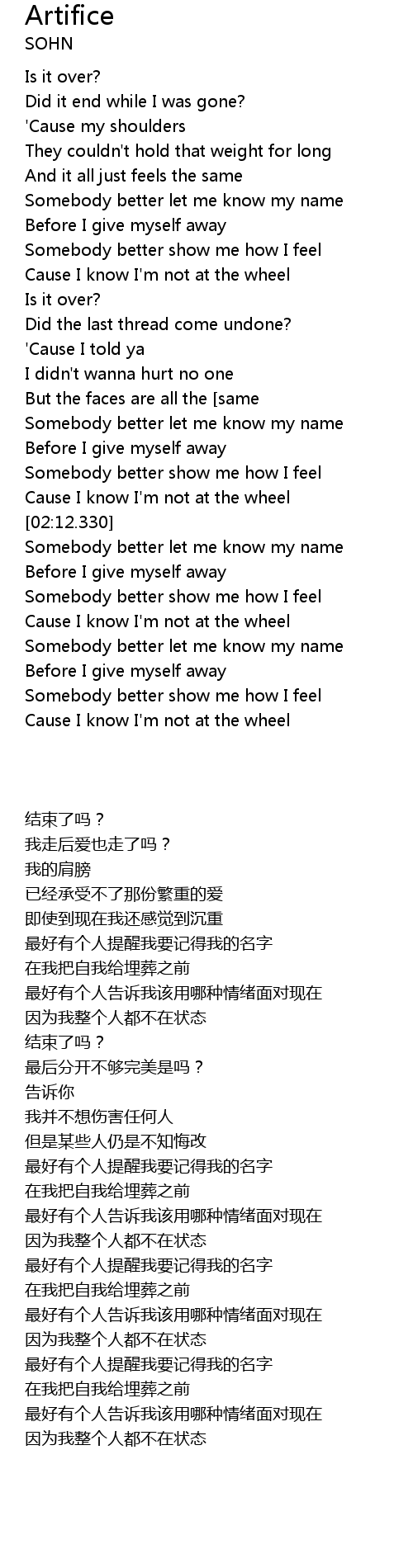 | [02:07.150] | Cause I know I'm not at the wheel |