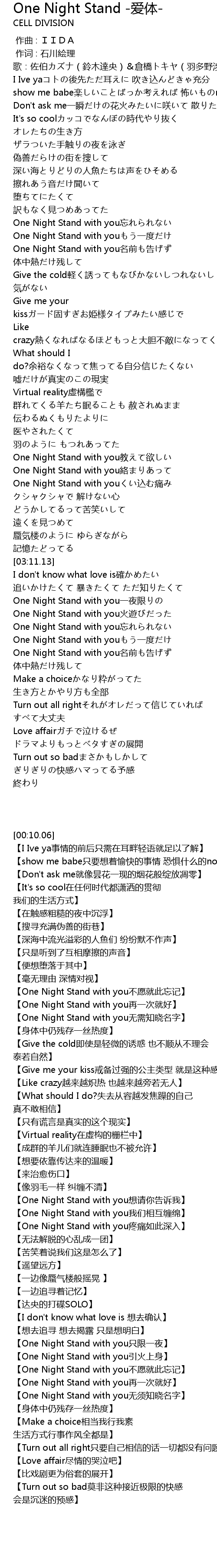 | [03:56.30] | One Night Stand with you yí dù |