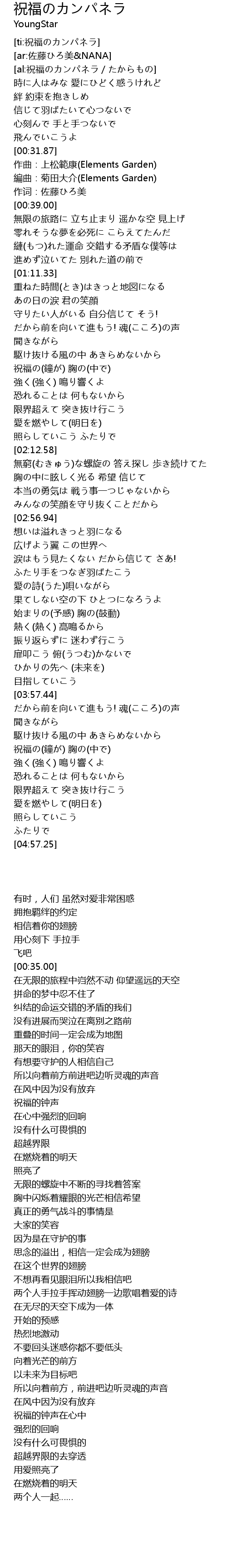 | [04:26.90] | 祝福の(鐘が) 胸の(中で) |