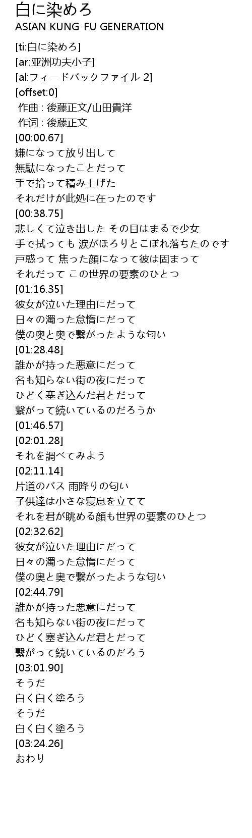 | [00:00.00] | 作曲 : 後藤正文/山田貴洋 |