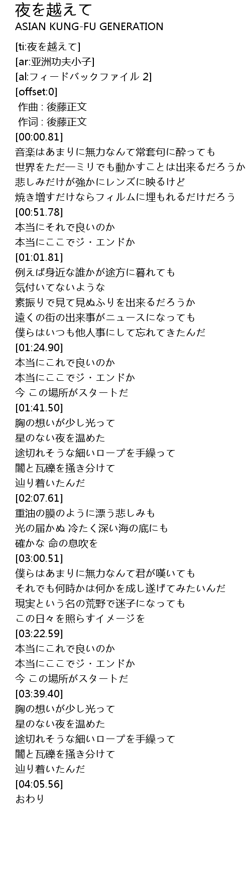 | [00:36.14] | 世界をただ一ミリでも動かすことは出来るだろうか |