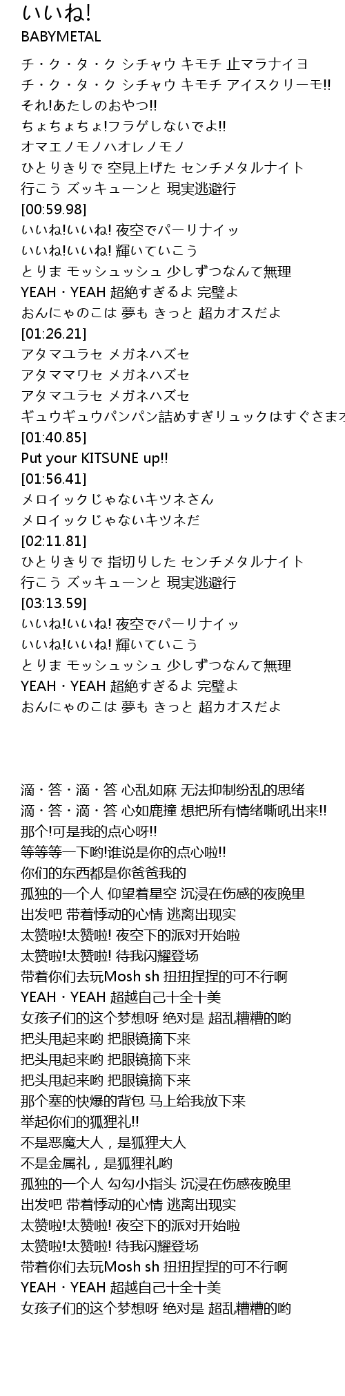 | [03:18.12] | いいね!いいね! 輝いていこう |