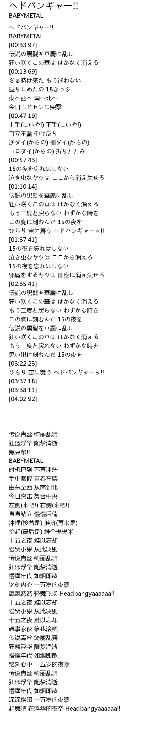 | [03:23.64] | ひらり 宙に舞う ヘドバンギャーッ!! |