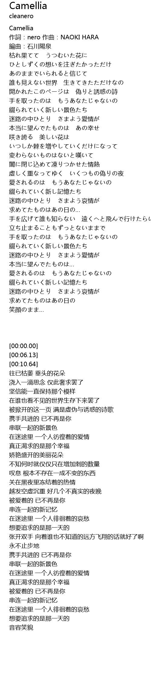 | [00:06.13] | 作詞:nero 作曲:NAOKI HARA |