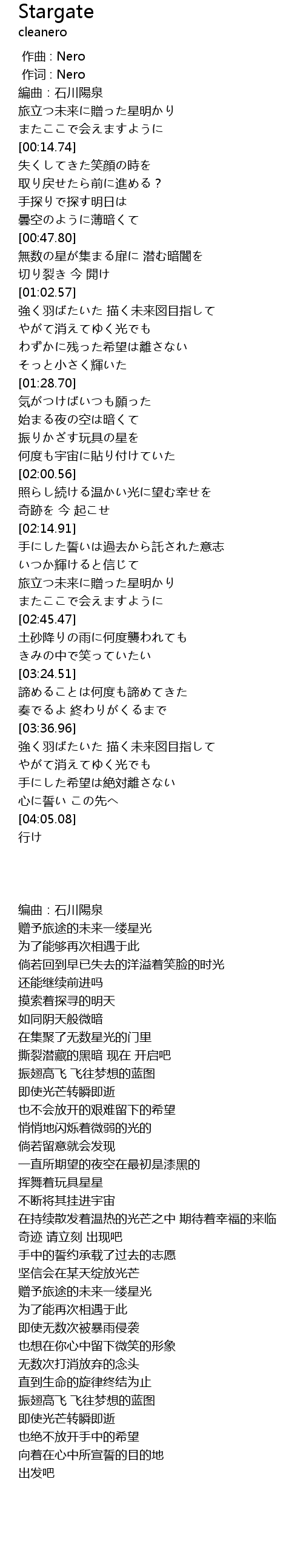 | [02:26.78] | 旅立つ未来に贈った星明かり |