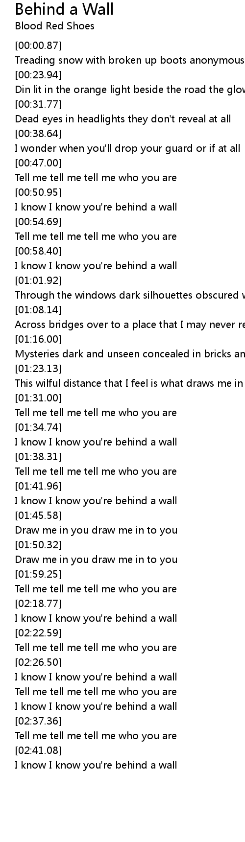 I know I know you're behind a wall |