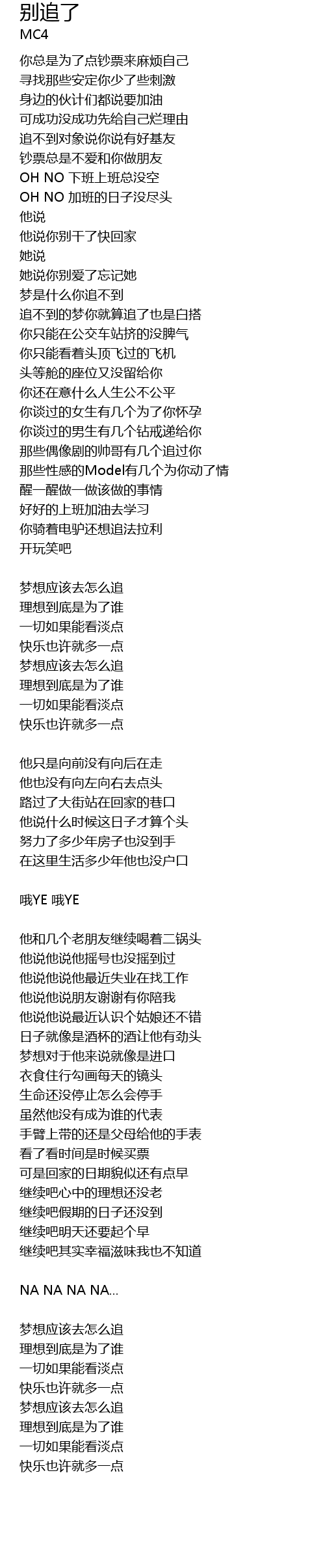 | zhuī bú dào de mèng nǐ jiù suàn zhuī le yě shì bái dā | |