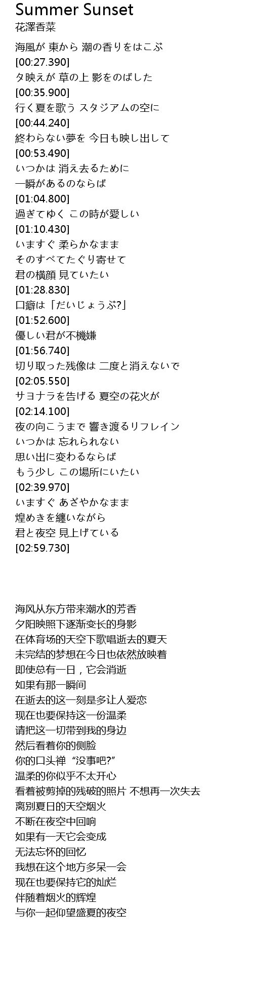 | [02:06.430] | サヨナラを告げる 夏空の花火が |