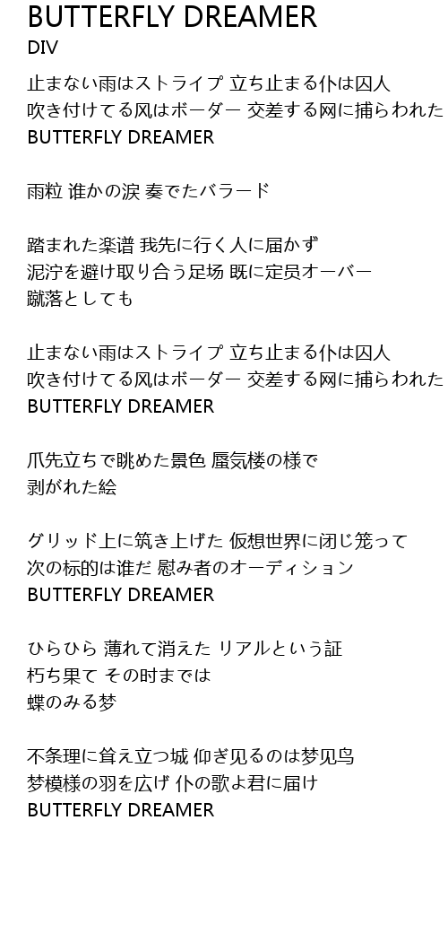 | 梦模様の羽を広げ 仆の歌よ君に届け | |