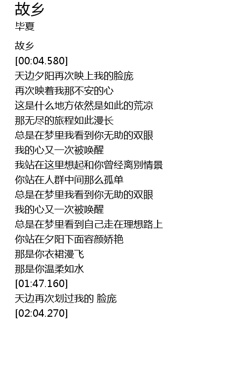 | [01:27.510] | 你站在夕阳下面容颜娇艳 |