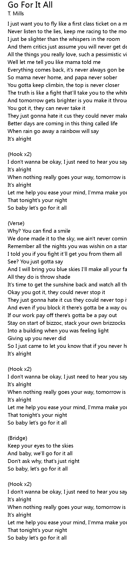 So baby let's go for it all |