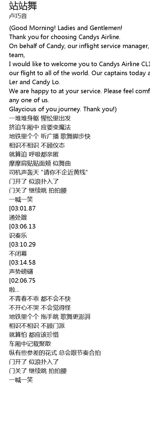 | [02:35.12] | 地铁里个个 拖手跳 歌舞更澎湃 |