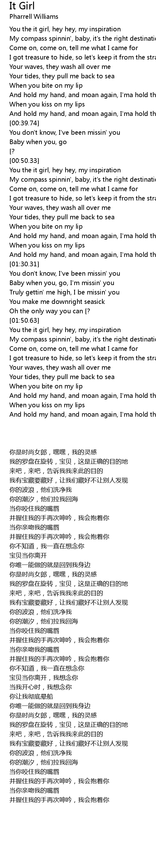 You the it girl, hey hey, my inspiration |