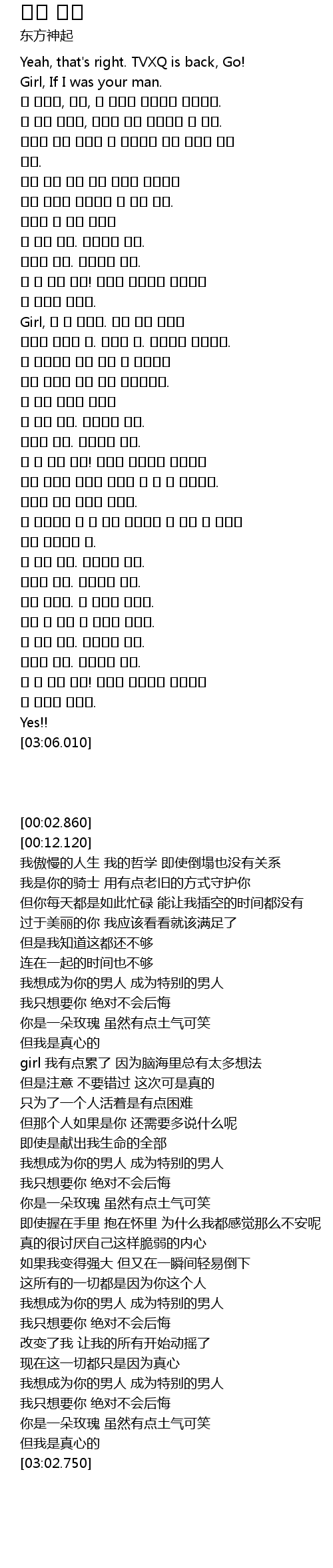 | [02:29.510] | 난 너의 남자. 특별하고 싶어. |